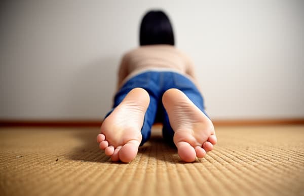 adult middle-eastern Iranian Persian woman with golden blonde wavy hair, sitting showing the crossed soles of their stinky bare dirty toejam feet, wearing traditional purple abaya, home, sitting on floor next to a pair shiny leather penny loafer stiletto high heels, her soles are dirty and full of toejam, no face blur